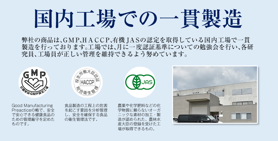 品質管理や衛生管理が徹底された環境で作られているため、安心して摂取できる体制が整っています。